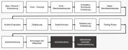 | Konzeption / Konzept-Erstellung | In der ersten Phase ist das Projekt gerade in der Entstehung. Es hat sich herauskristallisiert, dass zu einem bestimmten Vorhaben ein Projekt gestartet werden soll und nun werden erste Schritte gesetzt. Dazu zählt die Definition von Zielen, damit klar ist, wohin das Projekt geht. Ergänzend können auch explizite Nicht-Ziele vereinbart werden, um eine gewisse Abgrenzung zu schaffen. Zu Beginn wird ebenso eine Kosten- und Terminplanung erstellt, um den groben zeitlichen Ablauf und die Nutzung von Ressourcen zu klären. Sind die Ziele, die groben Kosten und der Bedarf an Ressourcen geklärt, so ergibt sich daraus meist recht einfach schon eine erste Grobplanung des Projektes. Das kann etwa in Form von voraussichtlichen Meilensteinen festgehalten werden. |